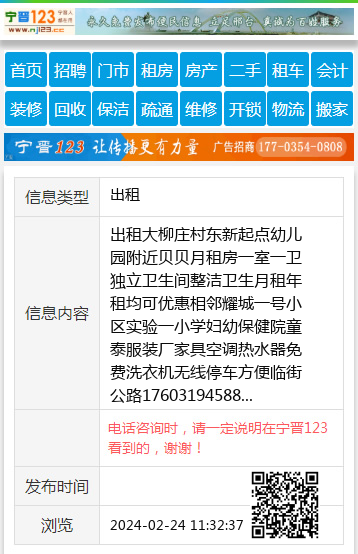 出租大柳庄村东新起点幼儿园附近贝贝月租房一室一卫独立卫生间整洁卫生月租年租均可优惠相邻耀城一号小区实验一小学妇幼保健院童泰服装厂家具空调热水器免费洗衣机无线停车方便临街公路17603194588 【电话咨询时,请一定说明在宁晋123看到的,谢谢!】 |