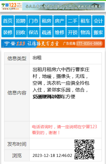 出租月租房六中西行曹家庄村,地暖,摄像头,无线,空调,洗衣机一应俱全拎包入住,紧邻家乐园,信合,交通便利,停车方便