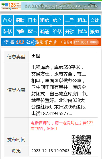 出租库房,库房550平米,交通方便,水电齐全,有三相电,里面可以做办公室,卫生间里面有旱井,库房全封闭式,自己独立库房门市。地里位置好。北沙良339大公路红绿灯东行200米路北。电话18731945577 【电话咨询时,请一定说明在宁晋123看到的,谢谢!】 |