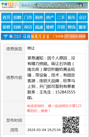 紧急通知:因个人原因,没有精力照顾。转让石坊路(南北街)厚切炒酸奶黄金旺铺,带设备,技术,有固定客源,连锁大品牌,旺季马上到,开门即可盈利有意者联系:王先生:15284355565