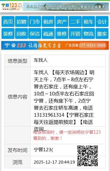 【宁晋石家庄每天往返提前预定】 【电话咨询时,请一定说明在宁晋123看到的,谢谢!】 |