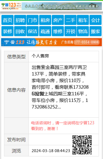 出售上城四期三室116平,带车位小房,报价115万,17320863252 【电话咨询时,请一定说明在宁晋123看到的,谢谢!】 |