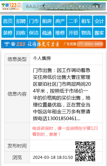 门市出售:因工作调动着急买住房低价出售大曹庄管理区婴泊社区门市两层两间204平米,按照低于市场价一半的价格购的买价出售,地理位置最优临,正在营业当中饭店年租金三万多有意请拨电话13001850461 【电话咨询时,请一定说明在宁晋123看到的,谢谢!】 |