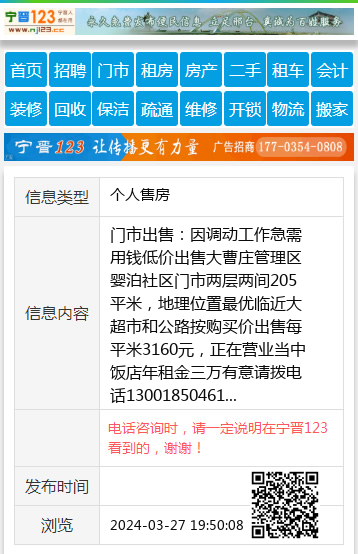门市出售:因调动工作急需用钱低价出售大曹庄管理区婴泊社区门市两层两间205平米,地理位置最优临近大超市和公路按购买价出售每平米3160元,正在营业当中饭店年租金三万有意请拨电话13001850461 【电话咨询时,请一定说明在宁晋123看到的,谢谢!】 |
