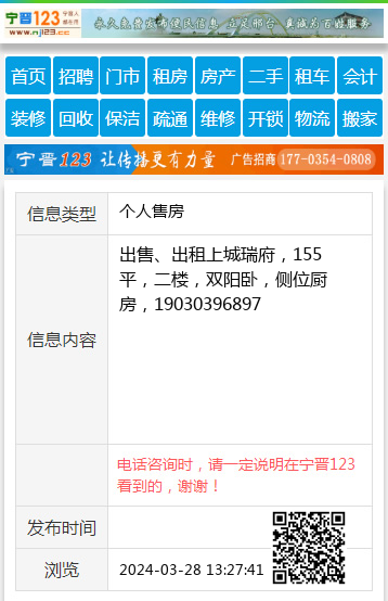 出售、出租上城瑞府,155平,二楼,双阳卧,侧位厨房,19030396897