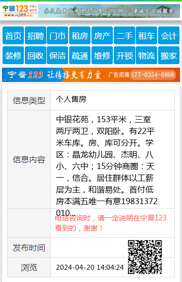 中银花苑,153平米,三室两厅两卫,双阳卧。有22平米车库。房、库可分开。学区:晶龙幼儿园、杰明、八小、六中;15分钟商圈:天一,信合。居住群体以工薪层为主,和谐易处。首付低房本满五唯一有意19831372010 【电话咨询时,请一定说明在宁晋123看到的,谢谢!】 |