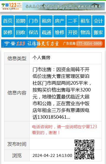 门市出售:因资金周转不开低价出售大曹庄管理区婴泊社区门市两层两间205平米,按购买价格出售每平米3200元,地理位置最优临近大超市和公路,正在营业当中饭店年租金三万多有意请拨电话13001850461 【电话咨询时,请一定说明在宁晋123看到的,谢谢!】 |