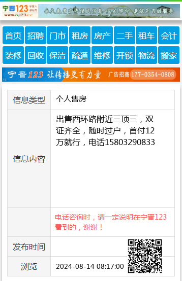 免责声明:本栏目信息由网友自行发布,宁晋123不承担任何责任!提高警惕,谨防诈骗!做推广、做信息置顶!请加宁晋123客服微信:ningjin009