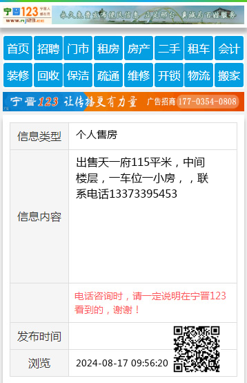 出售天一府115平米,中间楼层,一车位一小房,,联系电话13373395453