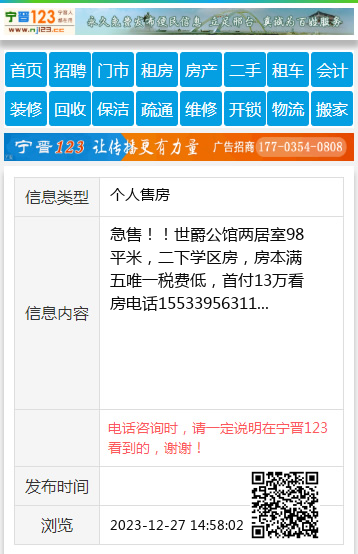 免责声明:本栏目信息由网友自行发布,宁晋123不承担任何责任!提高警惕,谨防诈骗!做推广、做信息置顶!请加宁晋123客服微信:ningjin009