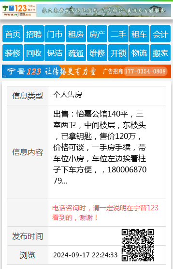 出售:怡嘉公馆140平,三室两卫,中间楼层,东楼头,已拿钥匙,售价120万,价格可谈,一手房手续,带车位小房,车位左边挨着柱子下车方便,,18000687079 【电话咨询时,请一定说明在宁晋123看到的,谢谢!】 |