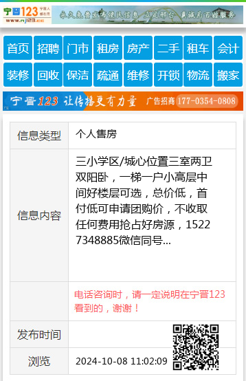 抢占好房源,15227348885微信同号 【电话咨询时,请一定说明在宁晋123看到的,谢谢!】 |