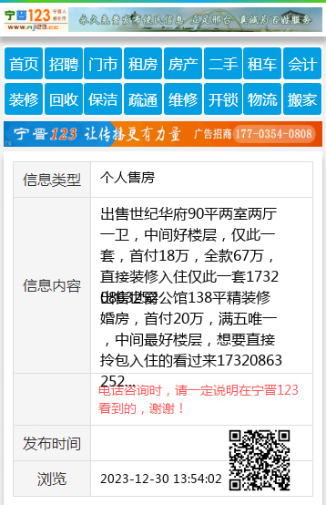 出售世爵公馆138平精装修婚房,首付20万,满五唯一,中间最好楼层,想要直接拎包入住的看过来17320863252 【电话咨询时,请一定说明在宁晋123看到的,谢谢!】 |
