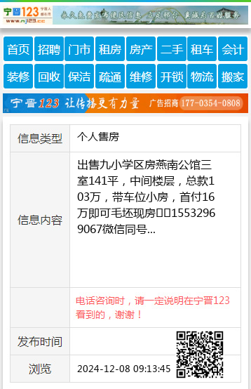 出售九小学区房燕南公馆三室141平,中间楼层,总款103万,带车位小房,首付16万即可毛坯现房☎️15532969067微信同号 【电话咨询时,请一定说明在宁晋123看到的,谢谢!】 |