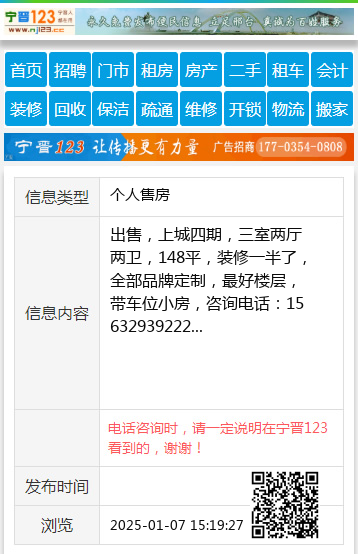 出售,上城四期,三室两厅两卫,148平,装修一半了,全部品牌定制,最好楼层,带车位小房,咨询电话:15632939222 【电话咨询时,请一定说明在宁晋123看到的,谢谢!】 |