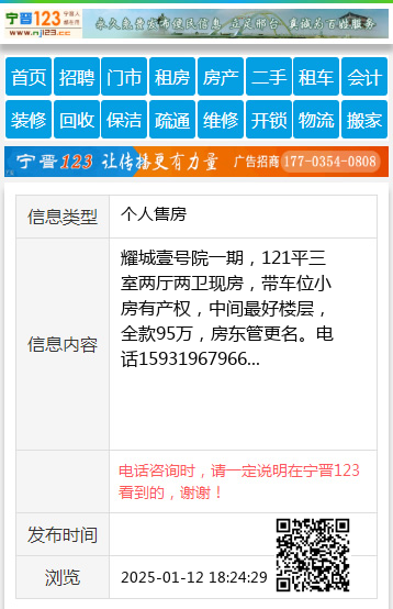 耀城壹号院一期,121平三室两厅两卫现房,带车位小房有产权,中间最好楼层,全款95万,房东管更名。电话15931967966 【电话咨询时,请一定说明在宁晋123看到的,谢谢!】 |