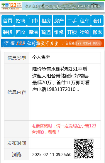 免责声明:本栏目信息由网友自行发布,宁晋123不承担任何责任!提高警惕,谨防诈骗!做推广、做信息置顶!请加宁晋123客服微信:ningjin009