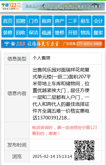 出售民乐园对面瑞祥花苑复式单元楼(一跃二)面积207平米带地上车库和储物间,位置优越紧挨大门,居住方便一层和二层都有入户门,一代人和两代人的最佳选择证件齐全满五唯一价格实惠电话13700391218 【电话咨询时,请一定说明在宁晋123看到的,谢谢!】 |