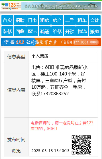 出售:🏠准现房品质新小区,楼王100-140平米,好楼层,三室两厅户型,首付10万起,五证齐全一手房,联系17320863252 【电话咨询时,请一定说明在宁晋123看到的,谢谢!】 |