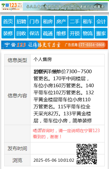 190平洋房单价7300~7500管更名。170平中间楼层,车位小房160万管更名。140平带车位102万管更名。132平黄金楼层带车位小房110万管更名。115平带车位全天采光82万。133平黄金楼层,带车位小房,简单装修,已拿钥匙!电话15227348885微信同号 【电话咨询时,请一定说明在宁晋123看到的,谢谢!】 |