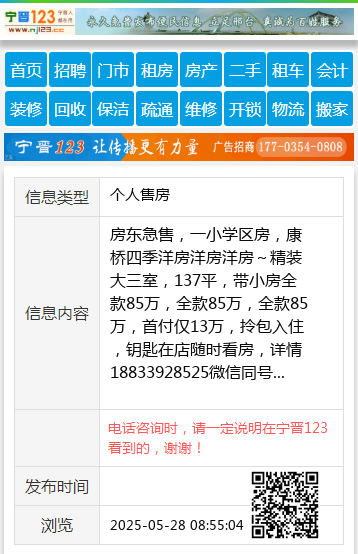 房东急售,一小学区房,康桥四季洋房洋房洋房~精装大三室,137平,带小房全款85万,全款85万,全款85万,首付仅13万,拎包入住,钥匙在店随时看房,详情18833928525微信同号 【电话咨询时,请一定说明在宁晋123看到的,谢谢!】 |