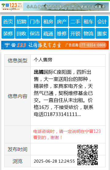 凤城国际C座阳面,四折出售,大一室送阳台的那种,精装修,家具家电齐全,天然气已通,契税维修基金已交。一直自住从未出租。价格16万,不接受砍价,联系电话18733141111 【电话咨询时,请一定说明在宁晋123看到的,谢谢!】 |