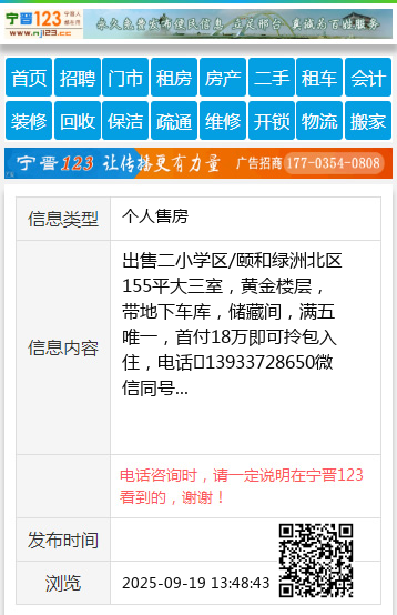 出售二小学区/颐和绿洲北区155平大三室,黄金楼层,带地下车库,储藏间,满五唯一,首付18万即可拎包入住,电话☎13933728650微信同号 【电话咨询时,请一定说明在宁晋123看到的,谢谢!】 |