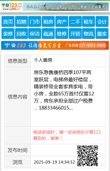 房东急售康桥四季107平两室跃层,电梯房最好楼层,精装修带全套家具家电,带小房,全款65万首付仅需12万,房东承担全部过户税费,18833466015 【电话咨询时,请一定说明在宁晋123看到的,谢谢!】 |
