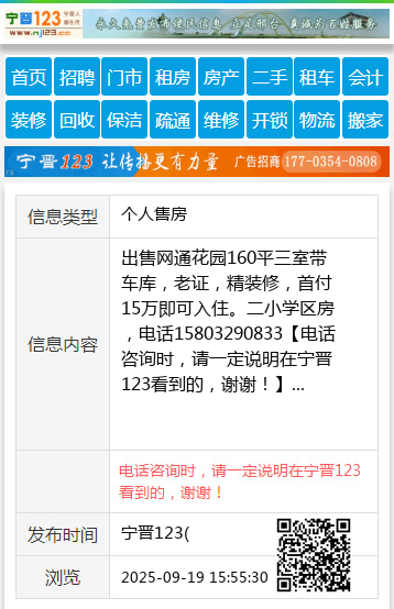 免责声明:本栏目信息由网友自行发布,宁晋123不承担任何责任!提高警惕,谨防诈骗!做推广、做信息置顶!请加宁晋123客服微信:ningjin009