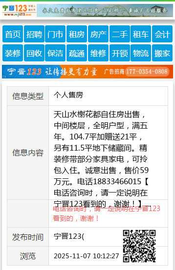 天山水榭花都自住房出售,中间楼层,全明户型,满五年。104.7平加赠送21平,另有11.5平地下储藏间。精装修带部分家具家电,可拎包入住。诚意出售,售价59万元。电话18833466015 【电话咨询时,请一定说明在宁晋123看到的,谢谢!】 |