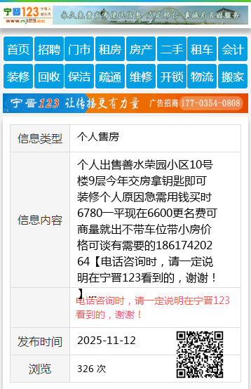 个人出售善水荣园小区10号楼9层今年交房拿钥匙即可装修个人原因急需用钱买时6780一平现在6600更名费可商量就出不带车位带小房价格可谈有需要的18617420264 【电话咨询时,请一定说明在宁晋123看到的,谢谢!】 |