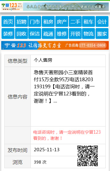 免责声明:本栏目信息由网友自行发布,宁晋123不承担任何责任!提高警惕,谨防诈骗!做推广、做信息置顶!请加宁晋123客服微信:ningjin009