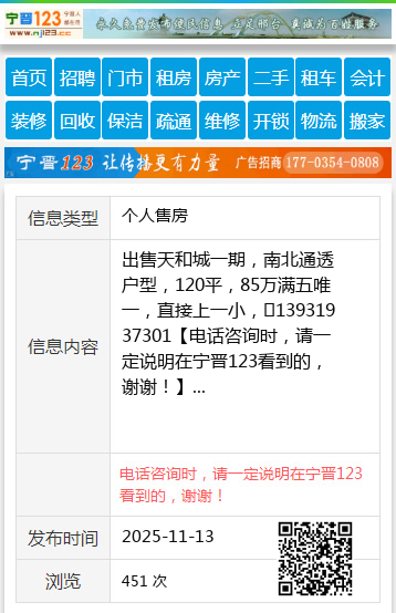 【电话咨询时,请一定说明在宁晋123看到的,谢谢!】