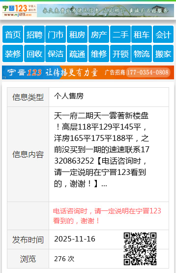 天一府二期天一雲著新楼盘!高层118平129平145平,洋房165平175平188平,之前没买到一期的速速联系17320863252 【电话咨询时,请一定说明在宁晋123看到的,谢谢!】 |