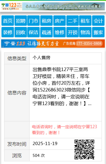 【电话咨询时,请一定说明在宁晋123看到的,谢谢!】