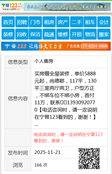 买房赠全屋装修,单价5888元起,尚德郡,117平,130平三室两厅两卫,户型方正,不绑车位不绑小房,首付11万,联系☎️13930920770 【电话咨询时,请一定说明在宁晋123看到的,谢谢!】 |