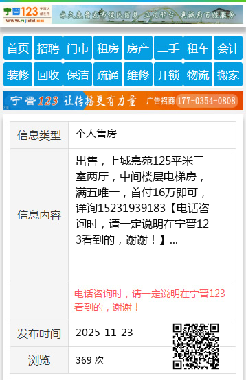 免责声明:本栏目信息由网友自行发布,宁晋123不承担任何责任!提高警惕,谨防诈骗!做推广、做信息置顶!请加宁晋123客服微信:ningjin009