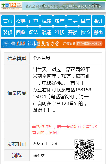 出售天一对过上品花园92平米两室两厅,70万,满五唯一,电梯好楼层,首付十一万左右即可联系电话13315916004 【电话咨询时,请一定说明在宁晋123看到的,谢谢!】 |