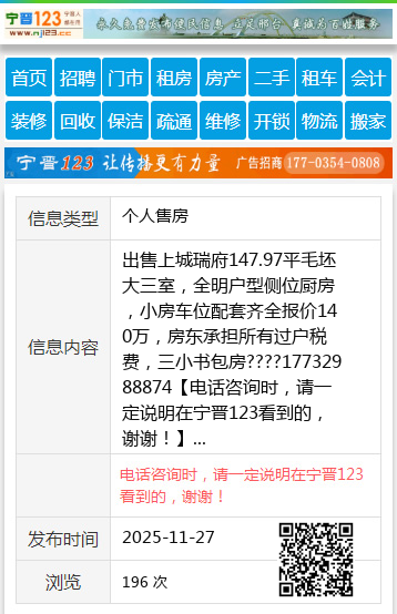 出售上城瑞府147.97平毛坯大三室,全明户型侧位厨房,小房车位配套齐全报价140万,房东承担所有过户税费,三小书包房????17732988874 【电话咨询时,请一定说明在宁晋123看到的,谢谢!】 |