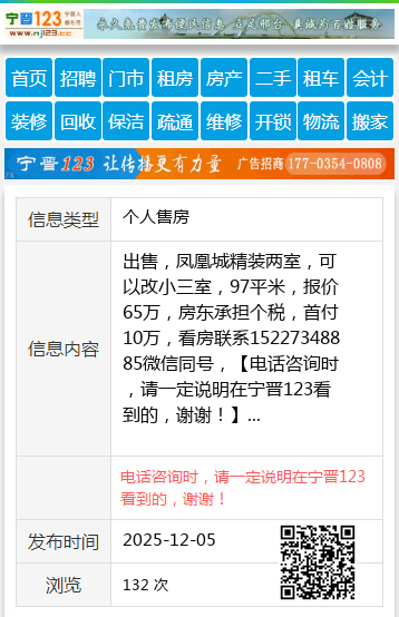 出售,凤凰城精装两室,可以改小三室,97平米,报价65万,房东承担个税,首付10万,看房联系15227348885微信同号, 【电话咨询时,请一定说明在宁晋123看到的,谢谢!】 |