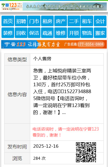 免责声明:本栏目信息由网友自行发布,宁晋123不承担任何责任!提高警惕,谨防诈骗!做推广、做信息置顶!请加宁晋123客服微信:ningjin009