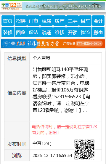 出售颐和明珠140平毛坯现房,即买即装修,带小房,满五唯一客厅带阳台,电梯好楼层,报价106万有钥匙看房联系15231936523 【电话咨询时,请一定说明在宁晋123看到的,谢谢!】 |