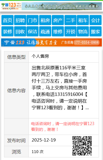 出售北辰原著116平米三室两厅两卫,带车位小房,首付十三万左右,直接一手房手续,马上交房与其他费用,联系电话13315916004 【电话咨询时,请一定说明在宁晋123看到的,谢谢!】 |