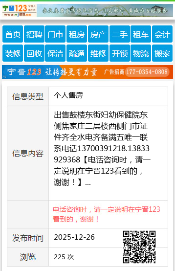 出售鼓楼东街妇幼保健院东侧焦家庄二层楼西侧门市证件齐全水电齐备满五唯一联系电话13700391218.13833929368 【电话咨询时,请一定说明在宁晋123看到的,谢谢!】 |