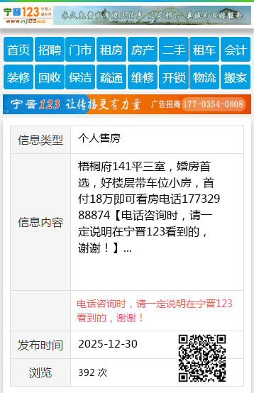 免责声明:本栏目信息由网友自行发布,宁晋123不承担任何责任!提高警惕,谨防诈骗!做推广、做信息置顶!请加宁晋123客服微信:ningjin009