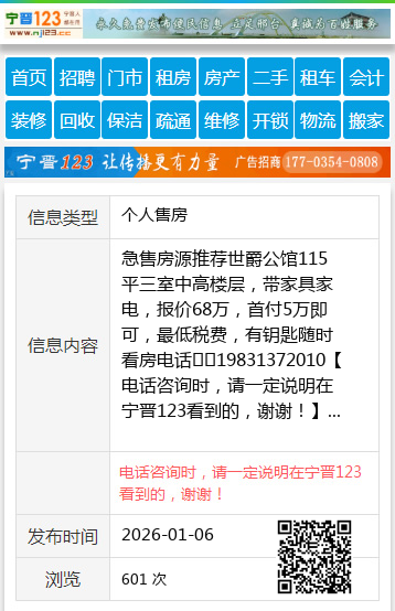 急售房源推荐世爵公馆115平三室中高楼层,带家具家电,报价68万,首付5万即可,最低税费,有钥匙随时看房电话☎️19831372010 【电话咨询时,请一定说明在宁晋123看到的,谢谢!】 |