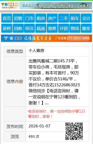 出售凤凰城二期145.73平,带车位小房,毛坯现房,即买即装,有本可首付,90万不议价,单价合5146/平,首付14万左右15226863023微信同步 【电话咨询时,请一定说明在宁晋123看到的,谢谢!】 |