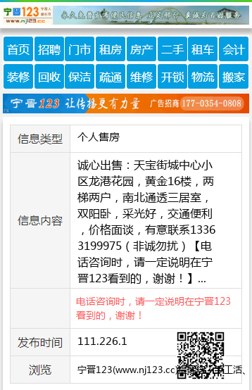 诚心出售:天宝街城中心小区龙港花园,黄金16楼,两梯两户,南北通透三居室,双阳卧,采光好,交通便利,价格面谈,有意联系13363199975(非诚勿扰) 【电话咨询时,请一定说明在宁晋123看到的,谢谢!】 |
