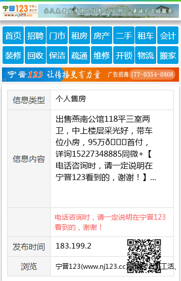 出售燕南公馆118平三室两卫,中上楼层采光好,带车位小房,95万🉑首付,详询15227348885同微+ 【电话咨询时,请一定说明在宁晋123看到的,谢谢!】 |