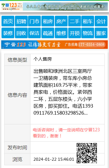 出售颐和绿洲北区三室两厅一卫精装房,带车库小房总建筑面积169.75平米,带家具家电,价格面议。紧邻西二环,五层东楼头,六小学区房,即买即住。电话13930911769.15803298526 【电话咨询时,请一定说明在宁晋123看到的,谢谢!】 |